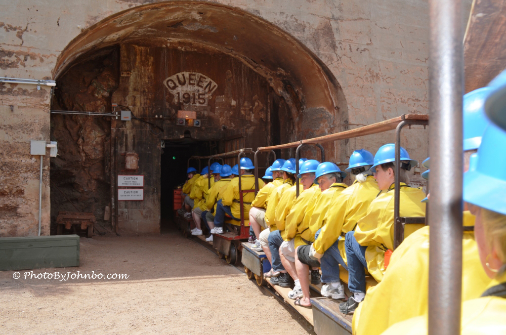 The signature attraction in Bisbee is a tour of the Queen Mine. Closed to mining operations after it played out in 1943, the mine is now open for tourists to visit. A $13 bill will get you a ride almost 1000 feet into the mine and several hundred feet under the surface of the mountain into which the mine is dug.