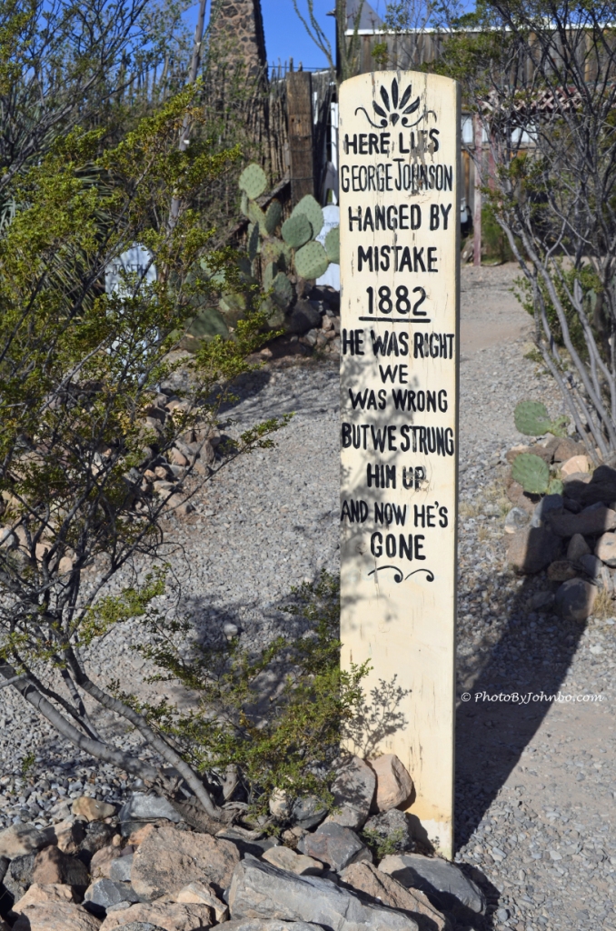 Very few of the redone grave markers were as elaborately descriptive of the person’s demise as George Johnson’s and Lester Moore’s markers. If known, the cause of death is usually described on the marker in short terms, e.g. “Drowned”; “Hanged”; “Killed by Apaches”.