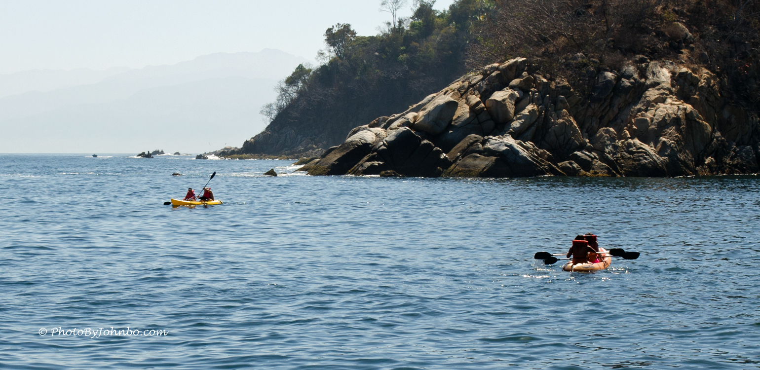 Many people chose to kayak as well as, or instead of, snorkeling. Once we got back on board, we watched some of the last kayakers getting a few last minutes on the water before having to reboard to head for Yelapa.