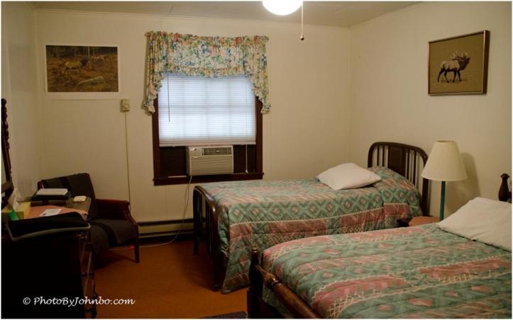 Rooms at the Fort Peck Hotel are typically equipped with two beds, a single and a double.