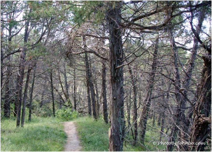 From the overlook, the trail looks to be sand, rocks and low growing ground cover. A short distance from the overlook though, we ran into a small forest. On a warm day, the shade was welcome. The trail is an easy walk for anyone with hiking experience. Though there are some steeper descents and climbs, the trail is well marked and should be an easy to moderate challenge for the non-hiker. The few forks we found in the trail always led back to the main trail, no matter which fork we chose to take.