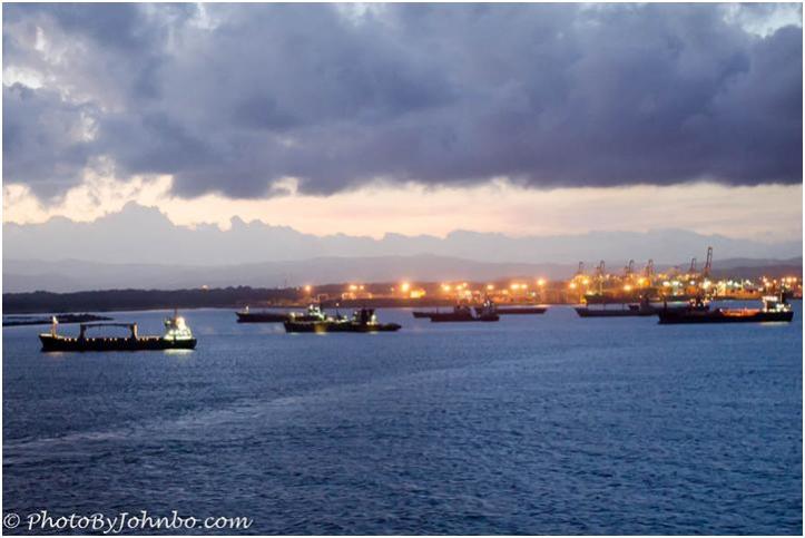 Early morning, at the entrance to the canal, ships sit at anchor awaiting their scheduled canal passage. I submit, hopefully for your approval, my entry for this week’s photo challenge, “Good Morning!”; a predawn view of Colón and the entrance to the Panama Canal.