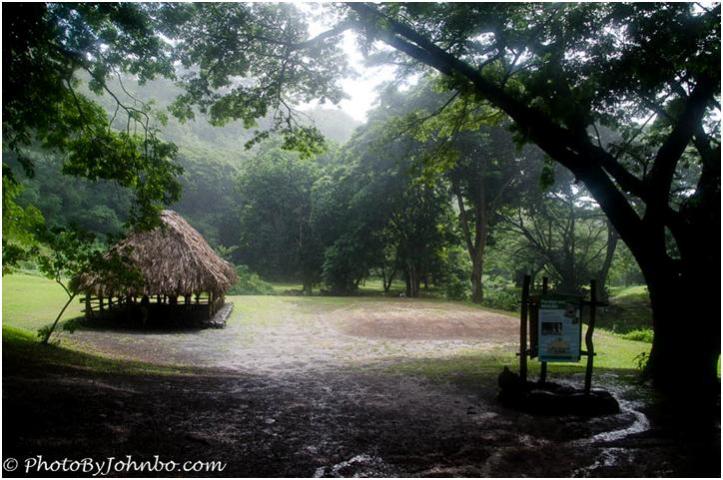 We attempted to walk the first self-guided tour area containing plants brought by the Polynesians who, in ancient times, would take up residence in the island. We didn’t get too far before deciding that the best course of action was retreat so that we may come back another day. When we arrived at the shuttle bus pick-up point, we visited with others who also decided that time would be better spent someplace other than the garden today.