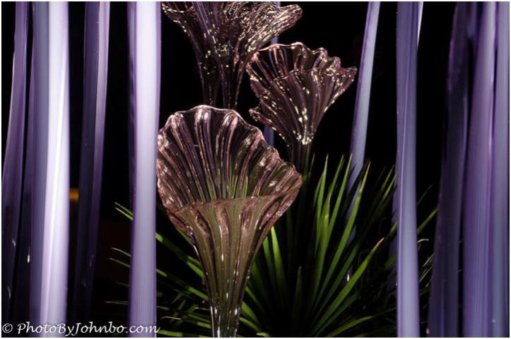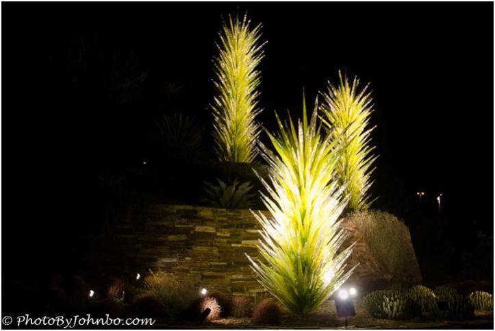 The Desert Botanical Gardens glass agave exhibit at the garden entrance is especially beautiful at night
