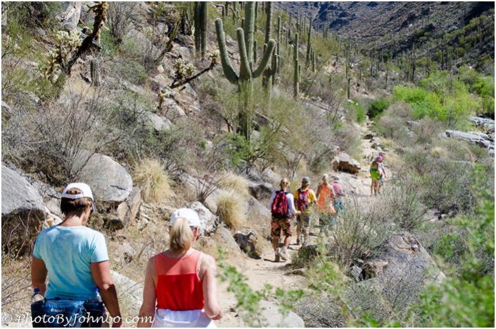 Last April (2013), our hiking club caravanned southeast from Buckeye, Arizona to Tucson. Our goal was to spend two days hiking near Tucson. We were hoping to hit the peak of wildflower season, but due to delays, we missed the pinnacle. Though the group was a bit disappointed, the natural beauty of the Santa Catalina Mountains in the Coronado National Forest made up for the lack of wildflowers.