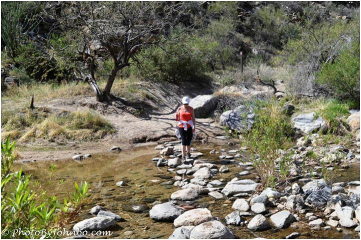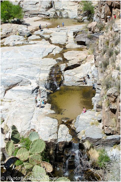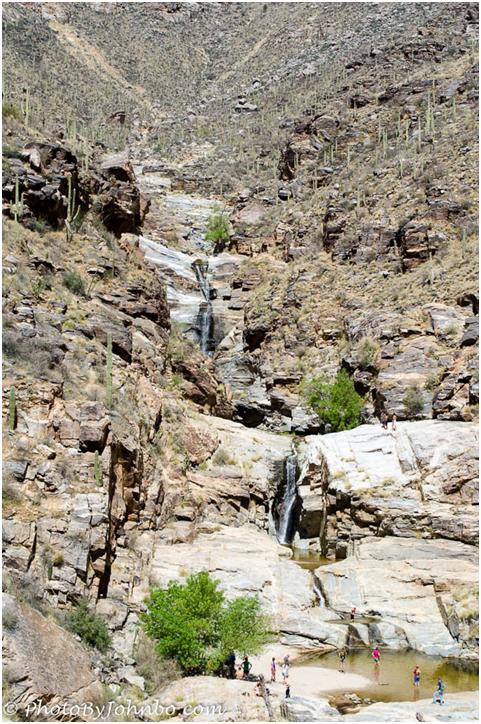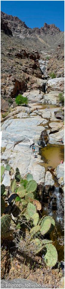 On our first day, we stopped on our way to Tucson to hike the Sunset Vista Trail at Picacho Peak, a perennial favorite of Arizona hikers. The second day of our trip, though, was by far the more enjoyable. The Bear Canyon Trail, with its meandering across a stream multiple times and the payoff at the destination of the seven stacked waterfalls at Seven Falls, easily trumped Sunset Vista in natural beauty.