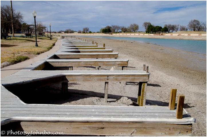 The Pecos River flows through Carlsbad, New Mexico, however a 3-year drought has caused the abandonment of many water-based activities along the river.