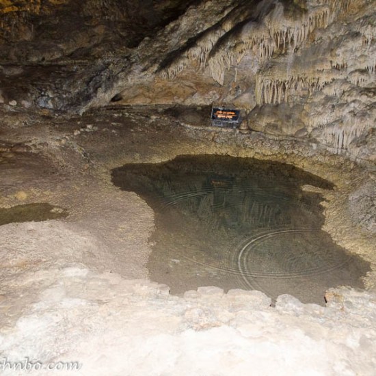 There are many pools of water on the cavern floor. This one is known as Mirror Lake.