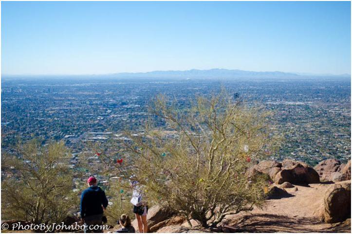 Echo Canyon Summit Trail is short, only 1.3 miles one way, and it gains around 1200 feet of elevation in that short distance. Listed on the Camelback Mountain website as “Extremely Strenuous and Difficult,” there are segments where a handrail helps hikers hold their footing on large expanses of relatively smooth rock surface. When you finally reach the summit, you will be rewarded with a 360 degree view of the city of Phoenix and surrounding communities.