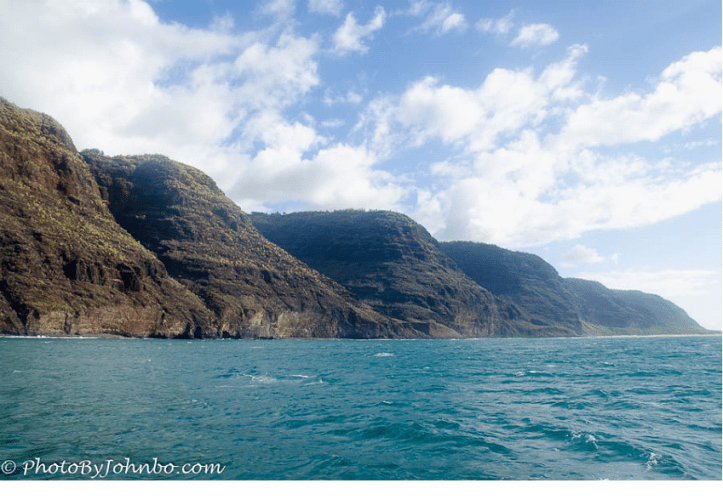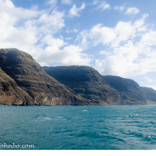 I have no business arrangement with Capt. Andy or his company. I present this photo essay as a tourist customer. The food was top-notch and the ride during dinner was calm and smooth. Going upwind, however, was not so much. Bumpy seas and salt spray were the order of the day. We turned southward a bit early due to rain squalls blocking our path ahead. Your mileage may vary depending upon the weather. You can find out more about Capt. Andy’s tours and options at http://www.napali.com/