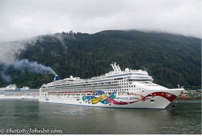 Juneau is a city of around 32,000 population, and the cruise tourist industry has become one of the major economic forces during the short Alaskan summer. Cruise ship passengers by the thousands show up daily and there are not that many docks capable of handling the giant floating hotels. On this cruise, our third with Norwegian Cruise Line (NCL), and the second on the Norwegian Pearl, we shared the route with the Norwegian Jewel. As it happened, there was only room in the port for one of NCL’s ships at a time. The Jewel would arrive early in the morning and depart by 2 PM. Our ship would arrive at 2 PM and leave at 10 PM.