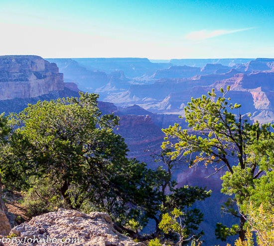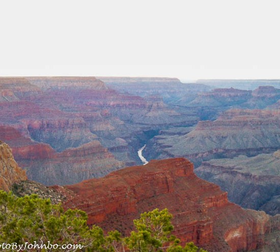 As you may note in the photo above, the canyon is not one single gorge, but a myriad of gorges etched out of the landscape over the centuries by the Colorado River and her tributaries along the canyon’s 275 mile (442 km) length. On our trip, we visited the South Rim, easily the most popular and easiest to visit portion of the national park. Though the north rim of the park is only ten miles (16 km) as the crow flies, the closest path is a 21 mile (34 km) hike across the canyon along the North and South Kaibib trails. For most people, this is an overnight trek. A foot bridge along the trail crosses the river about 70 feet (21 m) above the water surface.