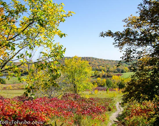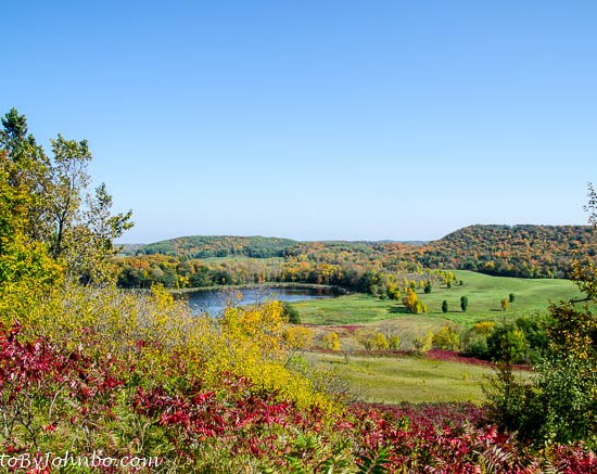 Our visit in late September coincided with the first signs of autumn. Fall colors were not yet at their peak, but signs of the impending winter would not be long before their arrival. The view from the highlands features rolling hills and forests of maple, oak and other hardwood species.