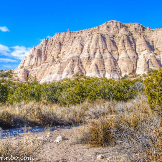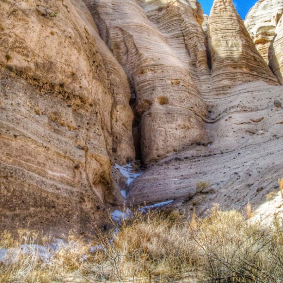 In a recent photo challenge, I featured a trio of photos taken at Kasha-Katuwe Tent Rocks National Monument. Travel about an hour north of Albuquerque, New Maxico and you will find the 4600 acre (18 km sq) public land managed by the federal government’s Bureau of Land Management.