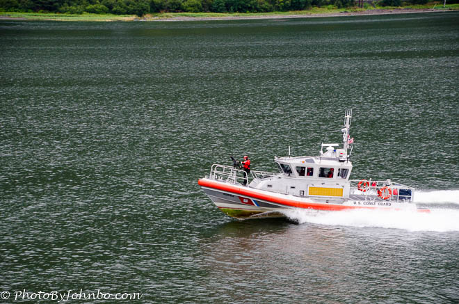 Off the coast of Alaska at Juneau, this Coast Guard boat was moving to be somewhere in a hurry.