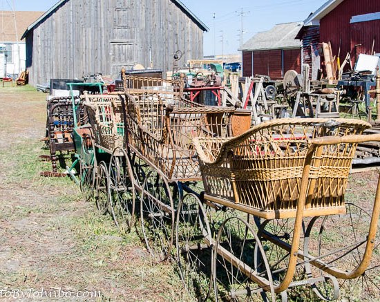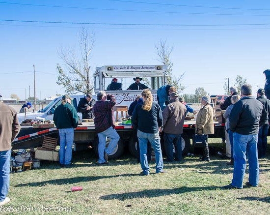 Bonanzaville’s 12 acres are laid out into streets along which visitors can stroll and view the collection of buildings brought in from around the region. Many of the buildings are open and furnished with period museum pieces. In fact, the day we visited, a cool October afternoon, the buildings were closed. However the historical society held an auction. They sold excess antiques. In the gallery accompanying this post, I have photos of a few items being offered for sale that day. Small crowds called out bids enthusiastically on the available items offered in multiple locations by a small group of auctioneers..