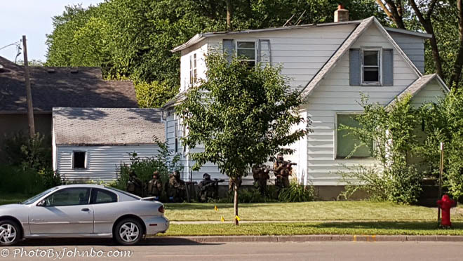 Thursday was a normal day at the gym, doing my usual workout when I noticed several people were looking out the large window and chatting quietly about something. Curiosity got the better of me and I was standing right by the exit door. But it had no window. I opened the door to see a SWAT van and an emergency vehicle parked on the side street. A team in full gear approaching the front door of the house across the street immediately caught my attention. I snapped a quick photo with my cellphone camera and ducked back inside hoping no bullets from the house would hit me before I heard the sound of the gunfire.