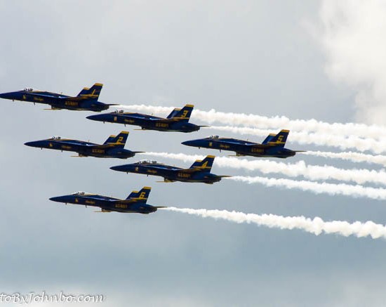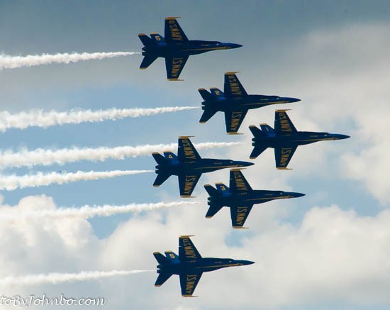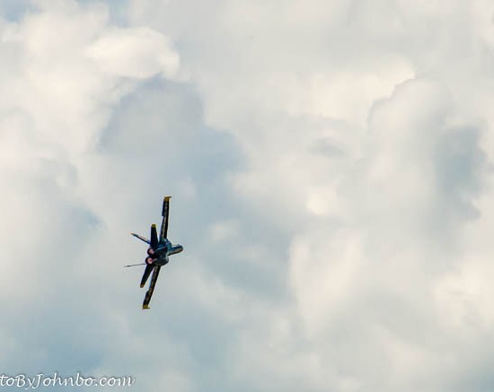 When this Lockheed Martin C130 Hercules takes to the skies, the crowd knows the Blue Angels will be in the air soon. “Fat Albert”, the Blue Angels’ maintenance aircraft accompanies the team carrying support equipment and personnel. For over a quarter-century, Fat Albert was “assisted” in a high performance take-off by eight Jet-Assisted Take-Off (JATO) rockets. A left-over from the Vietnam era, the supply of JATO bottles was expended during the 2009 airshow season. Even without the JATO assist, Fat Albert is master at short-field high performance takeoffs and landings. The expert U.S. Marine pilots demonstrate the aircraft’s capabilities as a lead-in to the Navy pilots flying Boeing F/A-18 Hornets.