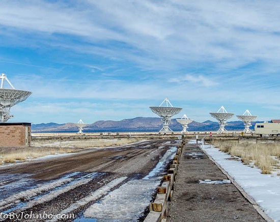 The array has multiple configurations that fit various goals of the astronomers who share the system’s output. A schedule of configuration changes is available. If you happen to be in the area on the first Saturday of each month, guided tours are available. Check the National Radio Astronomy Observatory here for their current schedule of tours before you travel. There is an admission fee but the tours are free. I submit for your review, a small gallery of images from the Very Large Array site. Click on an image to enlarge it and to scroll through the gallery.