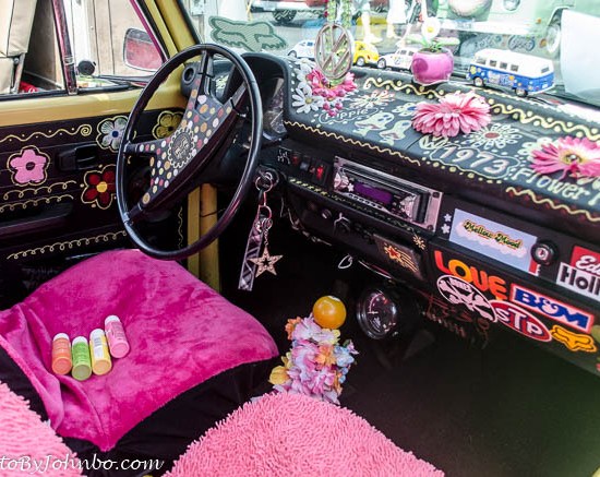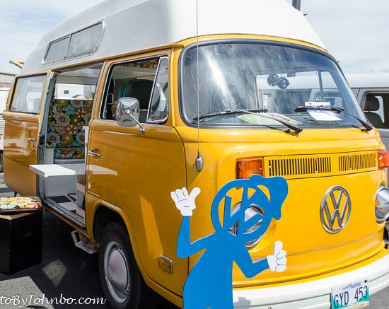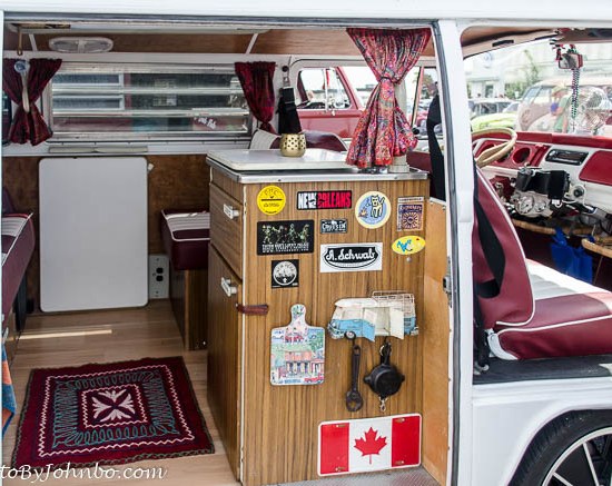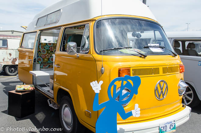 I parked in the nearest place, about three blocks from the show and grabbed my camera. The first row of vehicles featured the original VW “bus”, the Westfalia, the Vanagon and a collection of camper vehicles. Those were the tip of the iceberg, however. Of course, there were plenty of custom classic Volkswagen “Beetles” in a wide range of conditions. The example below is apparently at the drive-in theater, note the speaker stand at the right. After the movie, they must be planning a trip to the beach.