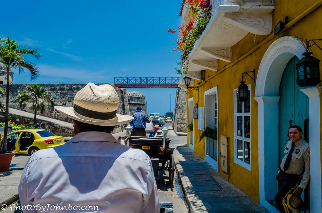 In the 16th century, the town of Cartagena, Colombia grew to be a trade center. Located at the northeastern end of South America, the wealthy city became the target for Caribbean pirates. One of the city’s defenses included a large wall around the city. In modern times, people found the wall to be constraining, so there are now many openings in the wall to allow the flow of modern (and as depicted in the above image), not so modern traffic into and out of the city center.