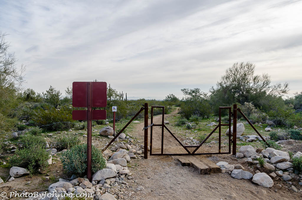 My final image is of a gate that appears to be pretty much useless, considering the V-shaped opening in its center. This gate is located at the boundary of Maricopa County’s White Tank Mountain Regional Park. The view looks outside the park toward an equestrian, hiking and biking trail. The Maricopa Trail is a connecting trail that will eventually cover 376 miles. Soon to be completed, the trail connects the county’s ten parks that surround the Phoenix metro area. The gate allows the passage of hikers and bikers, but prohibits access to motorized vehicles. The Maricopa Trail grand opening will feature the Prickly Pedal Race on January 23, 2016.