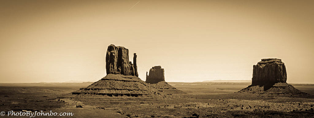 By the way, I love Monument Valley, and I love to watch the old John Ford movies that were shot there. I bring this up because the photo featured in Ms. Rowland’s challenge post features the three bluffs most prominently featured in images of Monument Valley; The Mittens and Merrick’s Butte. I couldn’t resist including one of my favorite images taken from a similar viewpoint to her photo. After taking the photo a few years ago, I changed it to a sepia-toned black-and-white image.