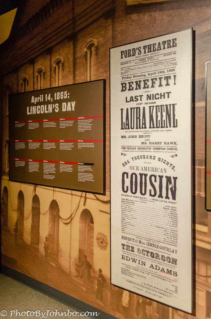 Stopping at the ticket window, we were to find out that a limited number of same-day free tickets are given to people who “just show up.” I don’t know the number of available same-day tickets, and we were there in February, their off-season. On the website here, they recommend tickets in advance. The $3 fee ensures a tour of the museum and the theater. And if you time it right, a volunteer from the National Park Service in period costume will provide a narration from the balcony of the theater, in full view of the Presidential Box, now preserved and open only to viewing from the balcony and main floor of the theater.