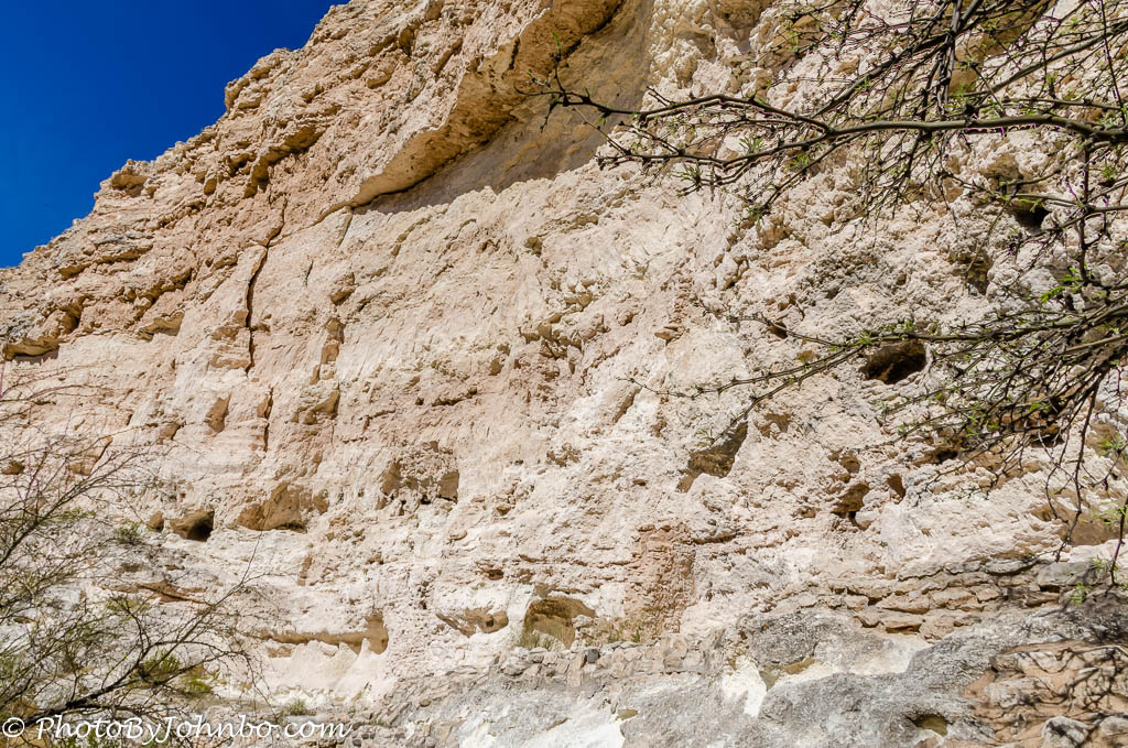 Castle-9The large limestone wall hides all but the most visible portion of the pueblo, as seen in the opening photo. Over 350,000 visitors a year stop to wander the concrete walkway and look at the pueblo, unfortunately only from the base of the limestone cliff. The white giant trees in the area are not desert trees, they are giant sycamores. The photos were taken in March so the deciduous trees haven’t yet started to put on their spring greenery. The gallery of images below include images of the dwellings and the nearby area. Next week we look at Montezuma’s Well, an interesting deep water “lake” that is perennially fed by underground water stores. Click on an image below to enlarge it and to scroll through the gallery.