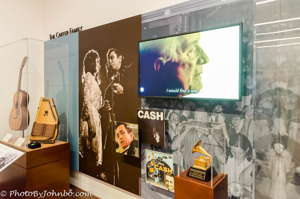 Last week’s Travel Tuesday featured a visit to the Musical Instrument Museum and I promised to feature more about the performers who play those instruments that entertain us so. You can review last week’s post here. My first indication that the museum features performers came when I walked around a corner and entered a gallery that featured a large exhibit featuring Johnny Cash and the Carter Family. The videos featured in each of the performer’s displays usually contain small snippets of several of their more popular recordings. In addition to the instruments on display, as you can see in the above photo, Johnny Cash won a grammy for at least one of the record albums on display.