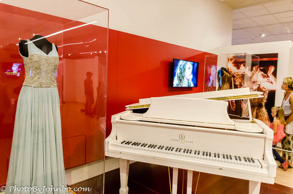Sometimes, only a single item is displayed featuring a singular performer. The John Lennon exhibit features only a single item, the piano he used to compose the song “Imagine”. The piano was completely encased in plexiglas. That’s unusual for the museum as most instruments are completely out in the open in their display cases. I wondered whether the enclosure was a necessity to keep people from being able to say they played the piano that once helped create a John Lennon masterpiece.