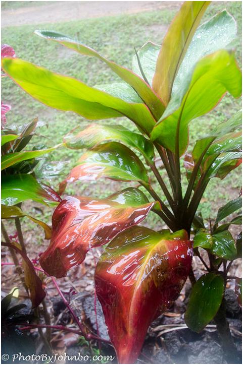 This week, Nancy Thanki asks us to share an image that features a surprising shine. “Has something bright or reflective caught your eye in the moment?” You can read the entire challenge post here. On a dreary, rainy day my wife, Lynn, and I visited the McBryde Botanical Gardens while we were visiting friends in Hawaii. Even though it was gray and a light rain was falling, the plant’s shine in the image above caught my eye as I walked by. A second example, shown below, also brightly reflected light off the wet surface of the plant.
