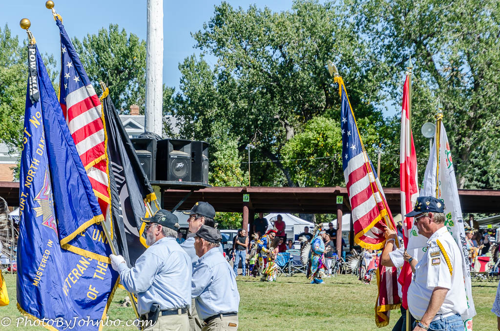 On this day, the anniversary of the 9-11 attacks on New York and Washington D.C., a special commemoration was held at the opening. Several Native American veterans groups were featured in the parade of colors. Two of those groups are featured in the image above.