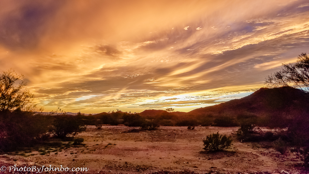 A couple of weeks ago, we took a short drive out to Skyline Park, about 10 minutes from our home. On the way back from the park, we found a couple of new places to capture Arizona’s interesting sunsets. We were too late to catch a view of the sun as it descended behind the White Tank Mountains, but there was still plenty of light and color in the sky when I pulled over to grab a couple of images on my cell phone.