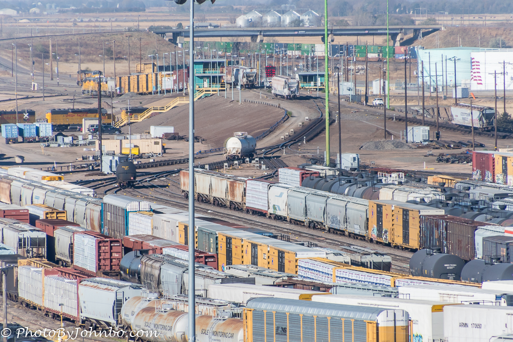 Union Pacific Railroad is the owner and operator of the yard which is named after former Union Pacific president Edd H. Bailey. In addition to car “sorting”, locomotives and cars are serviced and repaired at the facility. To give you an idea of the size of the yard, it is over 8 miles (13 km) long and 2 miles (3.2 km) wide. Visitors to the yard can pay a modest fee ($7 USD adults, $5 USD students, military and senior discounts offered), to tour the small museum exhibits and proceed to the 7th and 8th floor observation decks on the tower. Deck 7 is outside and makes for the best photography, but bring your best telephoto lens. The 8th floor interpretive guide, a retired Union Pacific employee, was very helpful in explaining the operation at the yard. The glass windows presented a problem for good photography as the deck is well lit and reflections from the interior lighting are sure to distract from your best compositions.