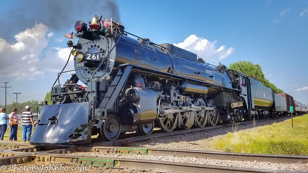 This week, North Dakotans went back in time to an earlier era when steam was king. An organization dedicated to railroad preservation out of the Twin Cities of Minneapolis and St. Paul, Minnesota brought one of their prize historic trains to help a regional freight railroad celebrate their 30th Anniversary. Last week, Engine number 261 and a collection of historic railroad cars traveled excursion routes in southeastern North Dakota, offering seats to passengers for the trips. Unfortunately for me, I didn’t find out about the excursions until long after all the tickets were sold out. That didn’t stop me from visiting the small town of Davenport to take a look at the gleaming engine and beautifully restored cars. Davenport is only about a 30-minute ride by car, and its 262 residents coincidentally happen to be celebrating Davenport Days, their annual historic community celebration. When we arrived, we were greeted by a yellow-vested attendant who helped sort out those who needed parking for the excursion and those who, like us, were just visiting the community. He pointed us to parking which happened to be in the shadow of 261, which was already generating smoke from the coal-fired boiler. Even though we didn’t have tickets to ride, they were offering tours of the engine cab. In a future Journeys, I will feature a more detailed photo story about engine 261 and its heritage.