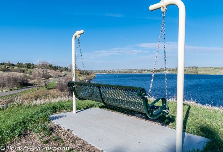 The campground has 27 campsites, about half of them with electrical hookups. The sites are on the southeastern perimeter of the lake and provide opportunities for great sunset photos. Our visit this day was around 8 AM, so you’ll note the shadows are from the east on a beautiful spring morning. The swing in the photo above is no doubt a great place to watch the boats return to shore as the sun sets.
