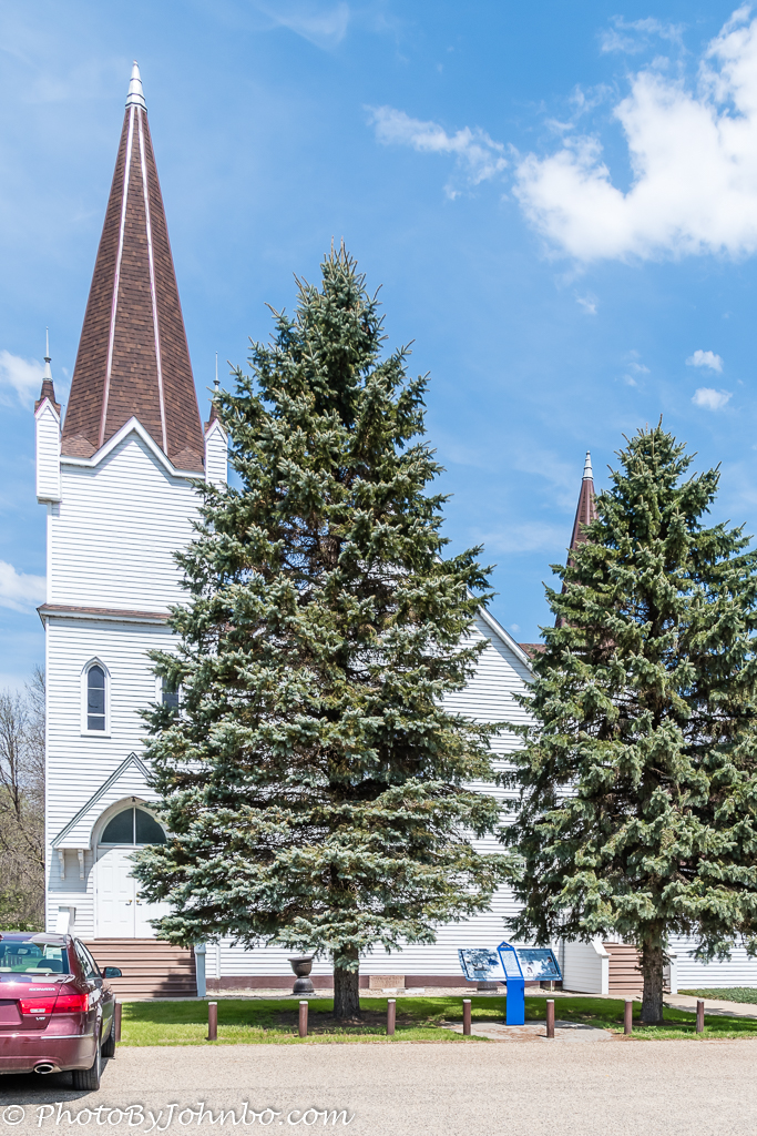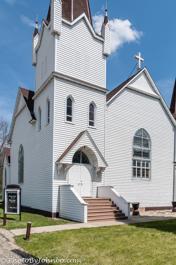 The final church we visited on our journey along this America’s Byway is actually located in the town of Fort Ransom. In 1882, a group of settlers became known as the Standing Rock Congregation. It took them until 1889 to raise the $1000 to build a church and after some discussion about which side of the river upon which to build, construction was completed. At that time, it didn’t have a steeple which was added in 1898. A vestry was added in 1902 and the church remained relatively unchanged until the 1970s when the Fellowship Hall was constructed. These tidbits of history were gleaned from a book titled Fort Ransom Area History, 1878-1978. There is no known copyright on the book, and the text can be found online at a digital library here.