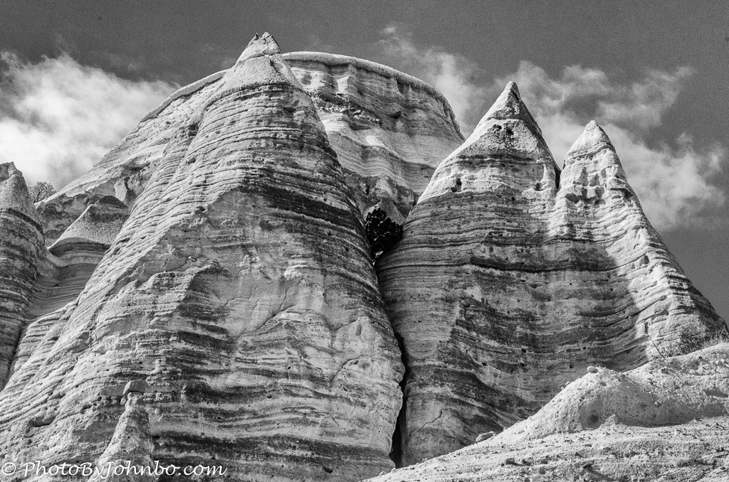Of course, there are many geologic features in the country that were created via some form of layering. Scanning my galleries of images, I found several landscapes that exhibit some sort of layering. Probably the strongest set of images I’ve captured in my travels were taken at Tent Rocks in New Mexico. To emphasize the effects of layering, depth and density, I converted a handful of images to black and white and enhanced their contrast to make the layering more visible.