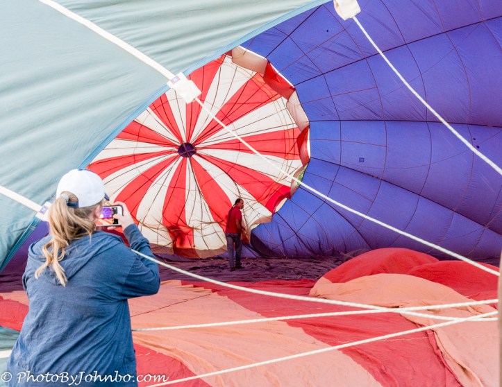 The members of our family were even involved in helping the crew set up and put away the balloon. Above, my grand niece, who was supposed to be holding the edge of the balloon open while it was being filled with air grabbed a quick photo of our pilot, Murray, while he inspected the balloon’s interior.