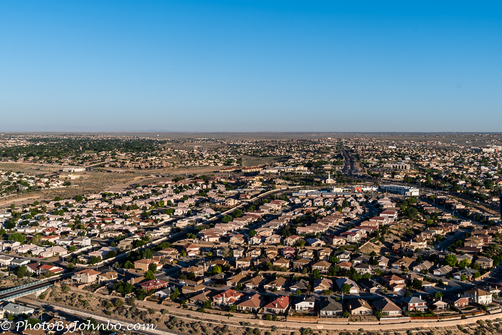 A common sight over the city, the hot air balloons are airborne on those many calm air mornings. Known for the annual Balloon Fiesta in October, when our family reunion was held last June, one of the attractions mentioned was a balloon ride over the city. This would be our second balloon ride ever as in 2002, at a previous Albuquerque reunion, Lynn and I took our first aerial balloon experience (and still have the champagne glasses to prove it.)