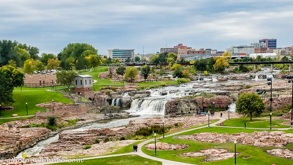 Last weekend found us in Brandon, South Dakota for a family wedding. The wedding was held late Saturday afternoon so we spent some free time in the morning exploring Sioux Falls. Our first stop that morning was only a 12 minute drive from our hotel in Brandon. Falls Park is a short walk from downtown, covers 123 acres and features the city’s namesake the falls on the Big Sioux River. The falls drop some 100 feet (30 m) over several cascades.