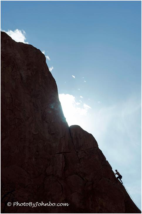 At the Garden of the Gods in Colorado Springs, Colorado, the large outcroppings of rock are an invitation to rock climbers from all over the world. Again, the person in the image helps the viewer put a reference to the size of the rock being scaled.