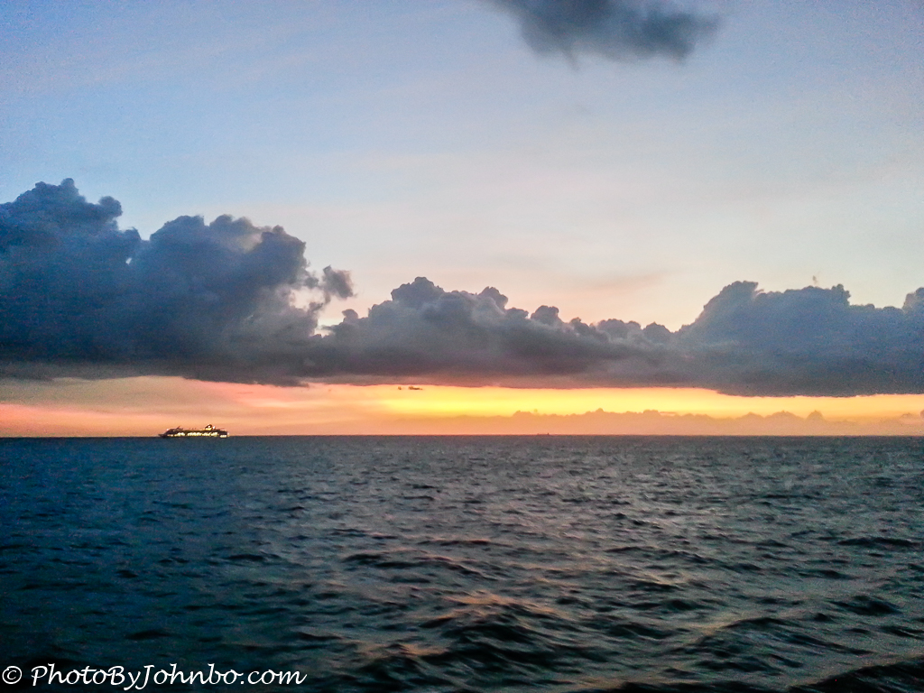 About the photo: I happened to step out on deck after dinner on our Panama Canal cruise a few years ago and saw the remaining light of the golden hour. Another cruise ship, lights aglow, sailed in the distance on the same track as our ship. We would eventually tie up in Puerta Vallarta side by side the next day.