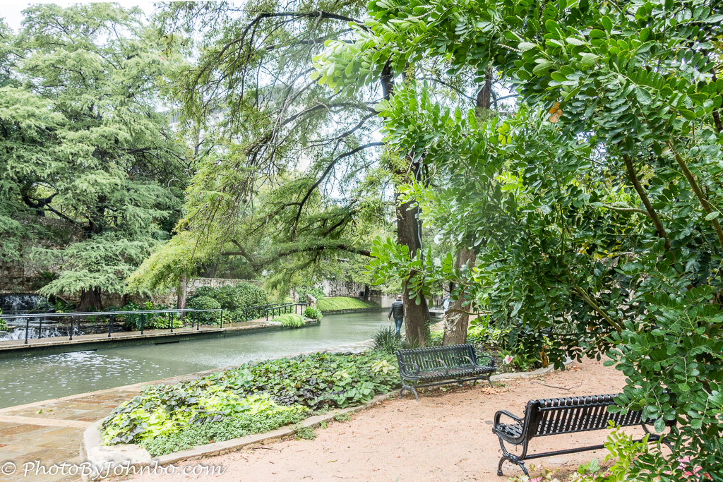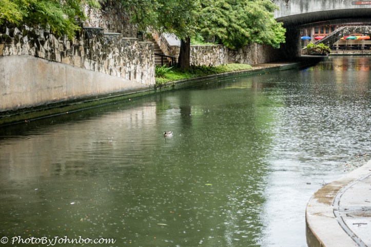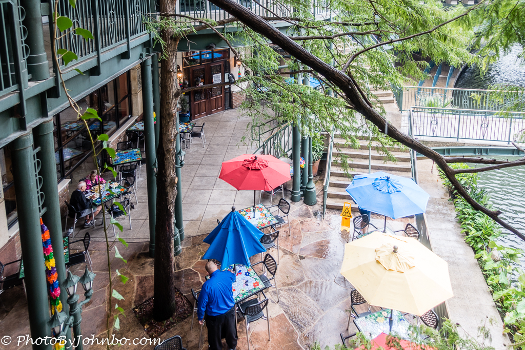 My first views of the river were from the upper level entrance to the Marriott Hotel. Stepping outside on a bridge, I saw a Mexican Restaurant. The weather, unsettled and rainy, was much better than forecast and few people were about. Many places were closed on the Sunday I arrived due to the possible arrival of Hurricane Harvey. As I noted in an earlier post, a last-minute change in the path of the hurricane spared San Antonio while Hurricane Harvey battered Houston, the worst weather I saw was light showers. After my arrival that morning and a quick lunch, I set out to explore the well-known attraction.
