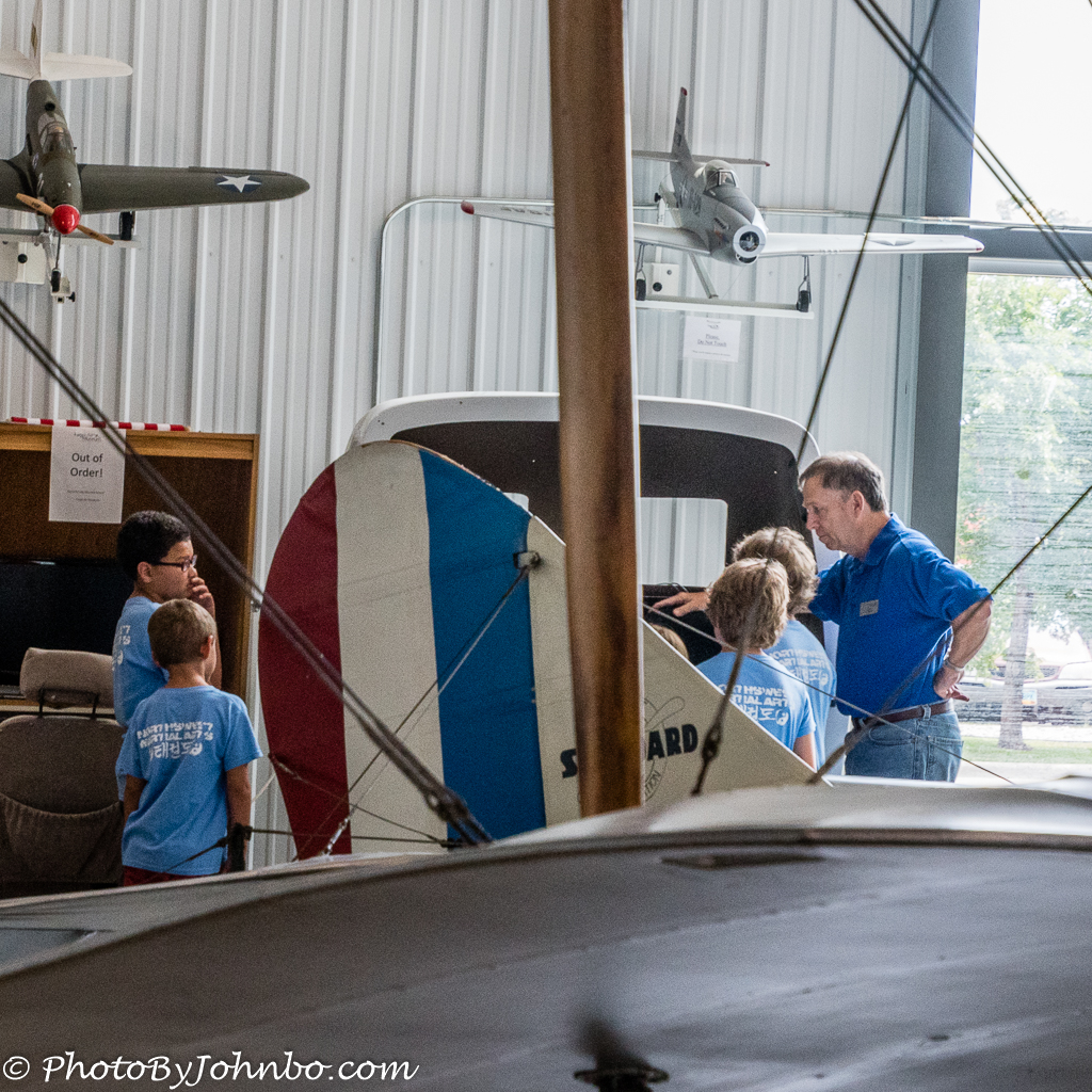 The Fargo Air Museum is a bit different from most of the air museums I’ve had a chance to visit. Unlike most museums, many of the airplanes on display here might find themselves in the air occasionally. Most of the aircraft are flyable. It might be a fully restored P-51 Mustang or a late model Cessna. Of course, not every aircraft on display is flyable. Some that were flyable had their “wings clipped” (made unflyable) by their previous owner and the donation made to the museum on the condition that the aircraft be used for display purposes only. In the opening photo, a museum volunteer gives a guided tour to a small group of prospective future pilots. The museum is staffed by volunteers who are interested in learning about the aircraft on display and in giving no-cost guided tours that highlight the historic aircraft.