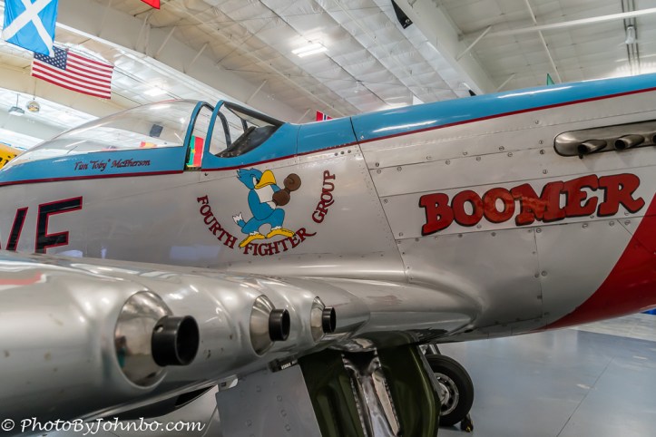 A restored and fully flyable P-51 Mustang is one of several World War II era aircraft on display. The pilot of this beauty, “Toby” McPherson, is an acquaintance. Several years ago, I accompanied a group of aviation enthusiasts in a twin-engine Cessna as we traveled to Oshkosh, Wisconsin. Toby was one of the pilots on that trip to visit the annual Fly-In that makes a small airport in Wisconsin the busiest airport in the world for the week of the famous aviation celebration sponsored by the EAA.