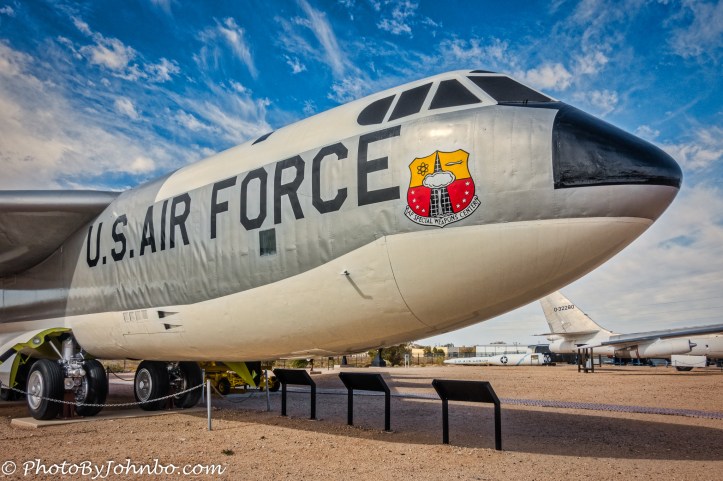 One of the iconic aircraft of the era is the venerable Boeing B-52 Stratofortress. Some of the 744 aircraft produced in the 1950s are still in service today. The last units ordered were delivered in the early 1960s. From its inception, the B-52 was meant to be a nuclear bomber, eventually modified to house several different weapons platforms including ballistic and cruise missiles. The platform is projected to be used until at least 2040, a lifespan unheard of in military aviation. The gallery of images below features images captured in Heritage Park, the outdoor area curated by the National Museum of Nuclear Science and History. On most browsers, you can click on an image to enlarge it and to scroll through the gallery.
