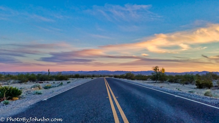 Our favorite sunset spot was the destination, but the sunset itself wasn’t as nice as the beautiful skies over the Gila Mountains south of the city. It looks like this road goes to nowhere, but it’s less than a mile to the I-10 and a large shopping area near our home here in Buckeye.