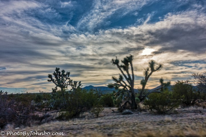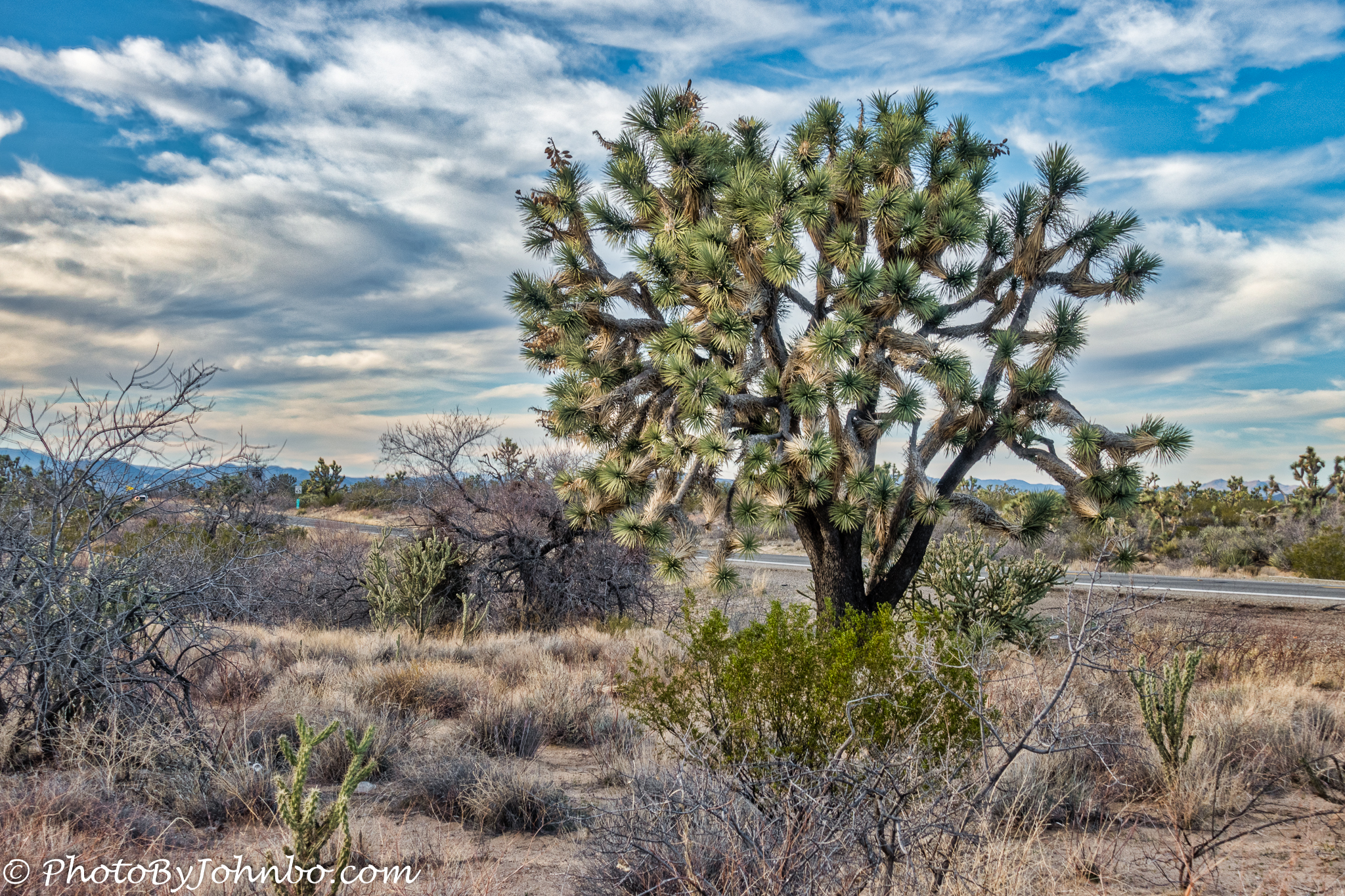A recent trip to Las Vegas brought us down this interesting highway. Others may have not noticed the unusual trees, thinking instead about the lure of Vegas and the possibility of instant wealth and prosperity. Not being a gambler, (spending only $1 on a single pull on a slot machine this trip), my mind wasn’t encumbered by such distractions. I was totally unaware of the beauty of this 50+ mile drive’s scenic forest until I saw the first trees. Even though I’d never seen one before (at least that I remember), I recognized them instantly from photos of Joshua Tree National Park, one of the places on my list of parks to visit at some point.